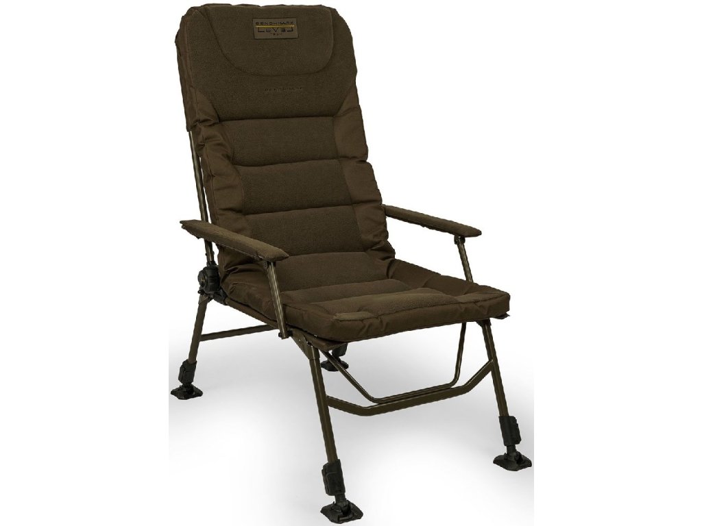 Křeslo Benchmark LevelTech Hi-Back Recliner je vybaveno vícebodovým polohovacím systémem, díky kterému je možné si křeslo přizpůsobit do požadované polohy a vždy si budete moci dopřát maximální pohodlí. Křeslo je vybaveno polstrovanými opěrkami, které nabízí oporu rukou při delším sezení. Zvýšená opěrka hlavy jen podtrhuje pohodlnost tohoto křesla, dnes nenajdete na rybářském trhu luxusnější křeslo.