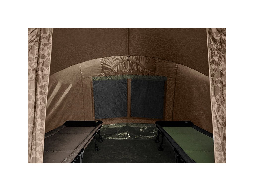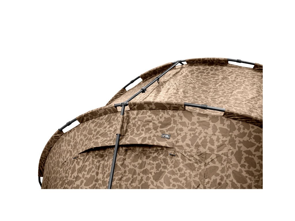 Nespornou předností bivaku je látka s oblíbeným vzorem CARPATH, což určitě nadchne všechny příznivce této originální kamufláže. Díky rozměrům bivaku se do něj bez problémů vejdou 2 lehátka, přičemž stále zůstane uvnitř velkorysý prostor pro pohyb, ale také na tašky a další komponenty výbavy potřebné pro pohodlný pobyt u vody. V případě potřeby pojme vnitřní prostor dokonce až 3 lehátka. Samozřejmostí jsou také dva úchyty na zafixování prutů, ale také velký kšilt, který poskytuje ochranu před sluncem či deštěm. Uvnitř jsou na stropě bivaku navíc umístěny 2 háčky, na které je možné zavěsit například lampu.