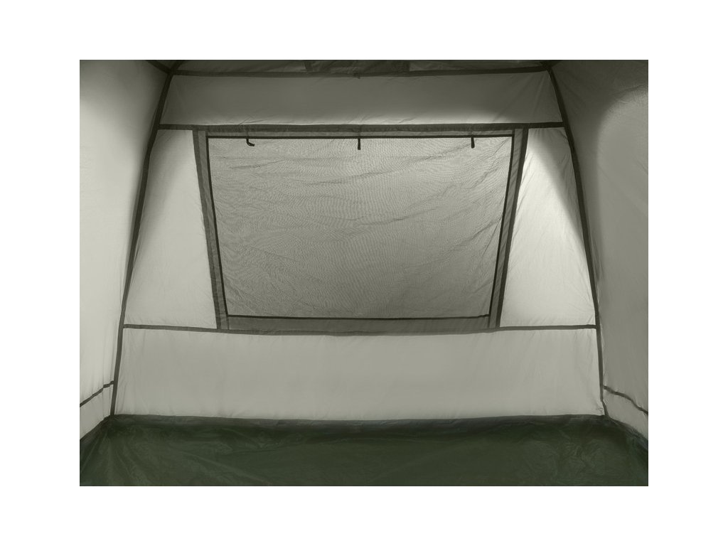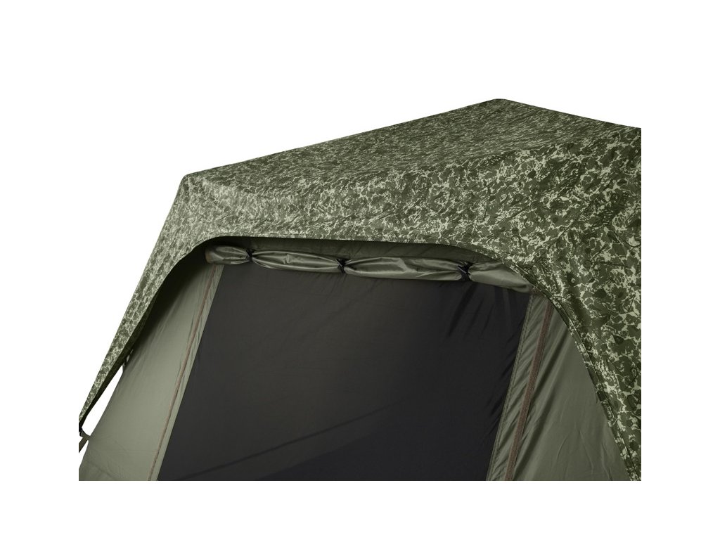 Velkou devizou je důkladně navržený větrací systém, sestávající z několika oken a překrytí, resp. „stříšky“ bivaku. Rozměrné moskytiérové okno je umístěno na předním i zadním panelu, přičemž čtyři menší okna jsou umístěna přímo na stropě bivaku. Díky tomuto důmyslnému systému lze zajistit cirkulaci vzduchu ve vnitřním prostoru i v době, kdy nelze větrat pomocí velkých oken. Určitě jej oceníte zejména v noci, kdy výrazně napomáhá snižovat kondenzaci na vnitřních stěnách. Součástí samotné stříšky je i velký kšilt, který vytváří dodatečnou ochranu před sluncem a deštěm. Stříška je ke konstrukci upevněna množstvím úchytů tak, aby byla co nejvíce eliminována možnost podfouknutí při silnějším větru. Ke stabilitě ve větrném počasí přispívají také 4 stabilizační šňůry a kolíky, které jsou součástí balení.
