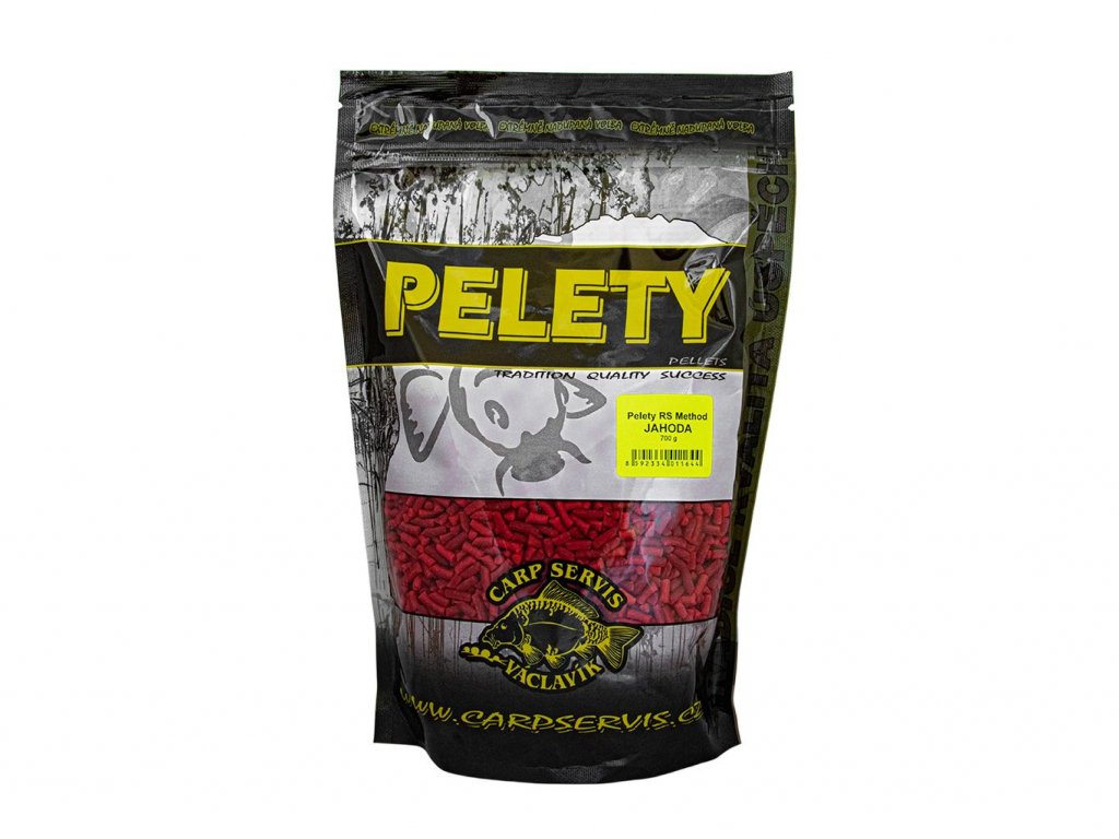 Pelety RS Method jsou stvořeny pro chytání na method feeder. Díky použité technologii výroby je lze velmi snadno připravit pro nalisování do krmítek, kde dobře drží a ve vodě se rychle rozpadají na jednotlivé peletky. Velmi rychle přilákají ryby ke krmítku. Jsou rychlo rozpustné a jsou napěchovány různými druhy atraktorů, které se prolínají v celém spektru výroby Carp Servis Václavík.