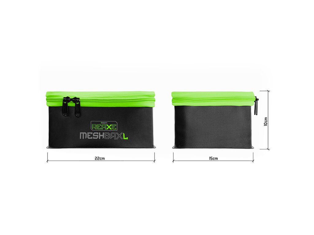MeshBAX lze využít také jako univerzální tašku pro různé drobnější rybářské příslušenství či nástrahy, dipy a jiné komponenty. Produkt je vyroben z materiálu EVA, který je snadno omyvatelný a odolný vůči vodě i mechanickému poškození.