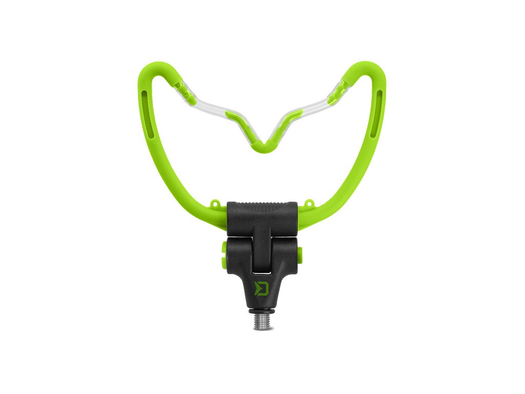 Šířka ramen je 14,5cm. Užitečným doplňkem držáku jsou očka pro uchycení háčku, do kterých můžete zachytit háček například při plnění feederového košíku. Držák má na těle umístěny 4 otvory pro chemické světlo, což oceníte zejména při nočním rybolovu. Držák je osazen univerzálním závitem a je kompatibilní s většinou vidliček a stojanů dostupných na trhu. Barevná zeleno-černá kombinace dokonale doplňuje feederovou řadu REAXE.