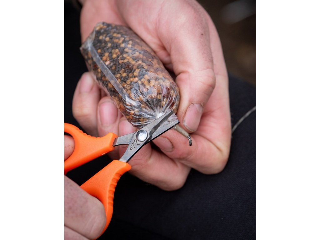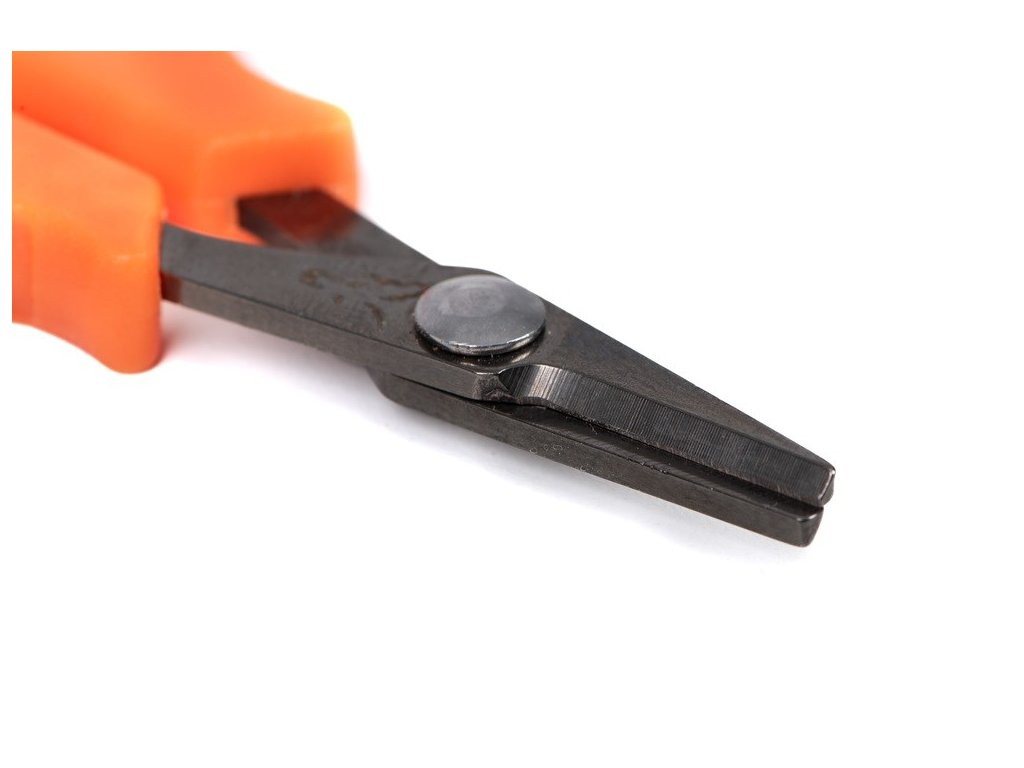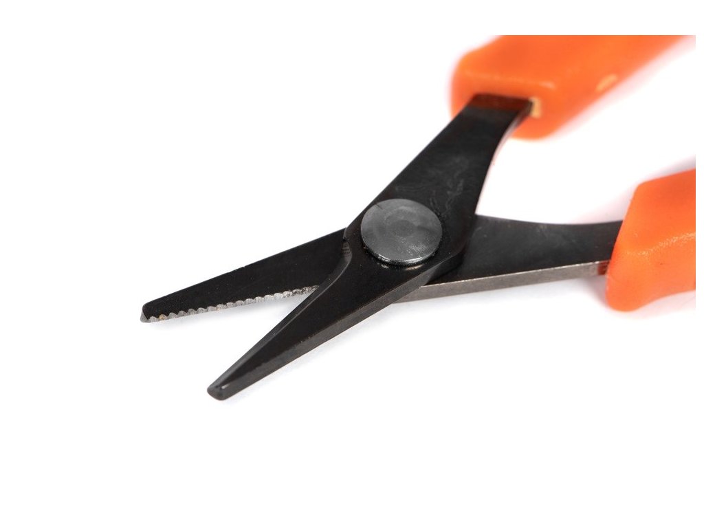 Vroubkované ostří pro čisté střihání těch nejjemnějších pletených šnůr a dalších návazcových materiálů