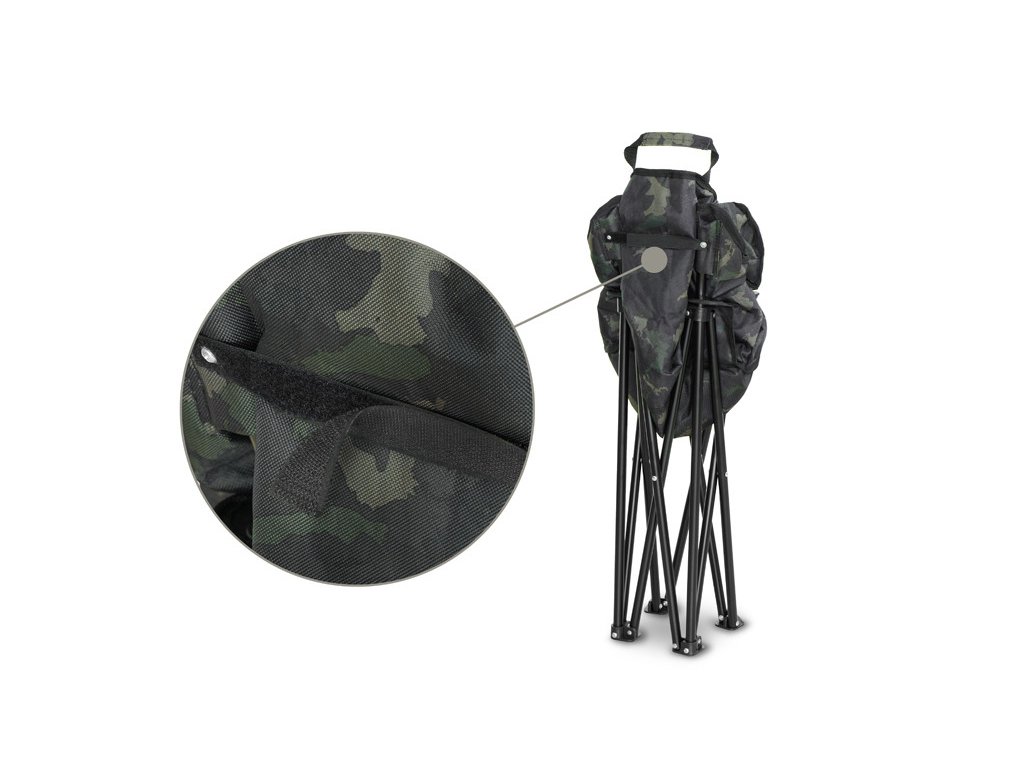 Na boku křesla se nachází praktická kapsa na odložení oblíbeného nápoje, telefonu nebo drobného příslušenství. Pro pohodlnou manipulaci během přenášení je FOLDIX vybaven praktickým úchytem ale i suchými zipy, které slouží k zafixování křesla během transportu.