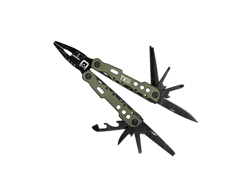 Delphin TaktyX 13 jsou vyrobeny z kvalitní nerezavějící oceli Inox. Tak jak napovídá číslice v názvu, disponují až 13-ti různými nástroji resp. funkcemi. Kromě klasických kombinovaných kleští se zde nachází nůž, pilka, otvírák na konzervy a láhve, pilník, nůžky na drát, děrovačka a 4 různé šroubováky. Každý z těchto nástrojů se po vyklopení automaticky zajistí pomocí spolehlivého systému, díky čemuž nehrozí zaklápění během používání.