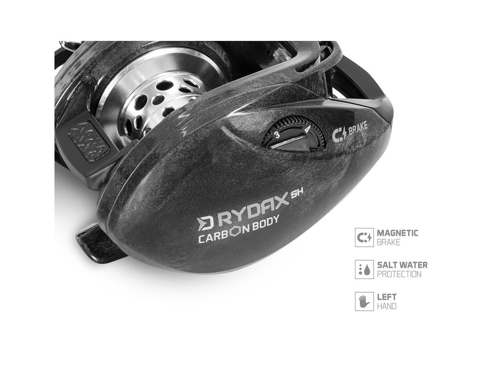 Delphin RYDAX je vybaven třemi brzdami. Nahazování a spouštění nástrah si díky mechanické a magnetické nahazovací brzdě nastavíte přesně podle hmotnosti nástrahy, čímž se předchází nechtěnému motání šňůry na cívce. Hvězdicová bojová brzda poskytuje přesné dávkování brzdné síly během zdolávání vodních predátorů.