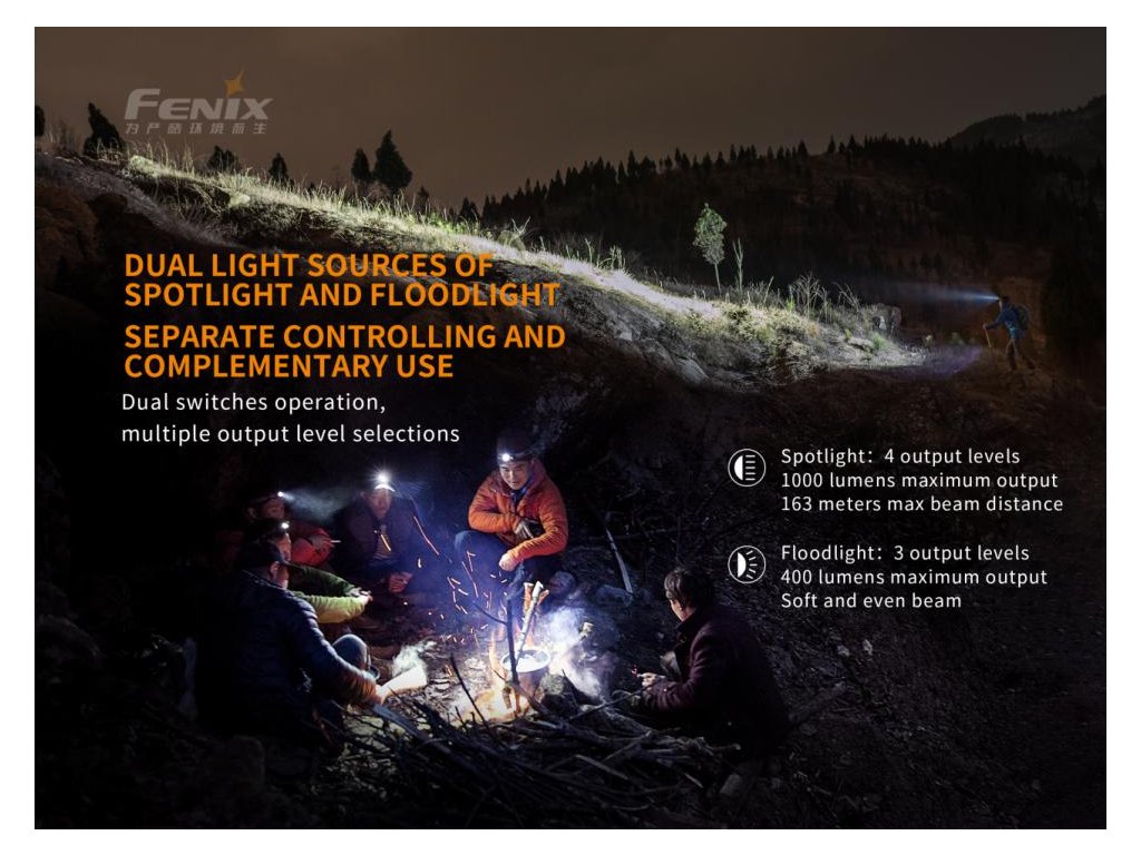 - Součástí balení je Li-ion akumulátor Fenix 18650 3400 mAh, popruhy na hlavu, nabíjecí kabel USB-C, náhradní o-kroužek.