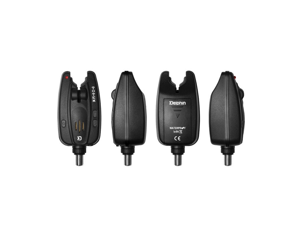 Delphin TOTEM nabízí naprostou voděodolnost signalizátoru a přijímač se skvělým dosahem až 150m v závislosti na okolních podmínkách. Signalizátor má ultra jasnou LED diodu s velmi dlouhou výdrží. Dobrou vychytávkou je alarm, který krátkým pípnutím a svícením LED diod upozorní na snížení stavu kapacity baterie pod 5V (také pípne i přijímač). TOTEM nabízí možnost otestování všech jeho funkcí. Má 4 úrovně hlasitosti včetně tichého režimu, 4 různé tóny a 4 úrovně citlivosti. Ve tmě zajisté oceníte možnost zapnutí noční diody. Vstup pro 2,5mm jack umožňuje připojení svítícího signalizátoru záběru. Hrubé pogumování v části kontaktu prutu se signalizátorem zamezuje poškození prutu. Signalizátor po záběru svítí 15 sekund (také přijímač).