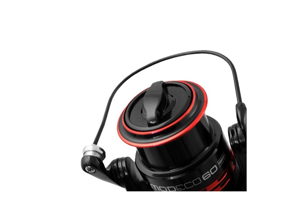 Navijáku nedělá žádný problém ani stahování objemnějších krmítek. Grafitové tělo je velmi tuhé a nekroutí se ani pod nadměrnou zátěží. Díky kovové kličce s ergonomickým madlem výborně padne do ruky. Kovová cívka je mělká a svým tvarem předurčuje tento naviják pro lov na feeder. Díky dokonale vyváženému rotoru je jeho chod velmi hladký a plynulý.