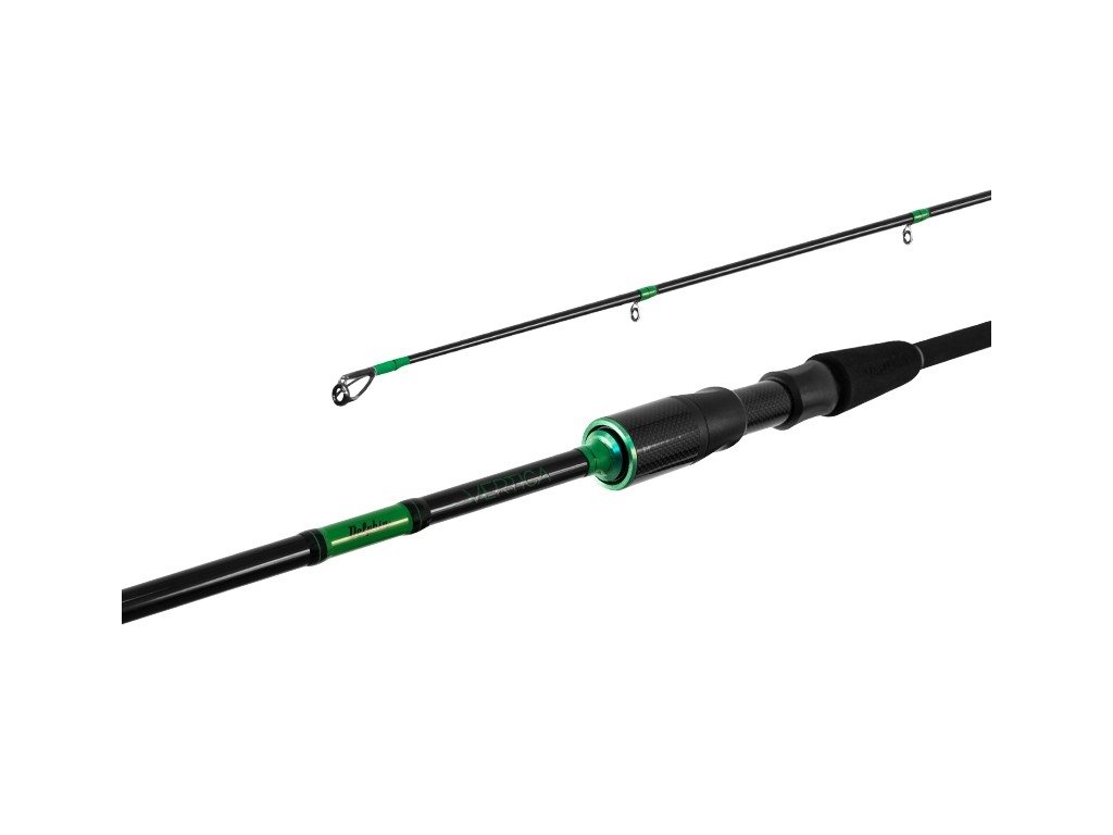 Na pohled netradiční rukojeť se v ruce drží zcela fantasticky a pomáhá vám dokonale procítit každý pohyb vaší nástrahy. Kombinace EVA pěny, gumového potahu a uhlíkových součástí je prostě nadčasová, ale zároveň velmi trvanlivá. Minimalistické sedlo zase drží patku navijáku bez přímého dotyku s blankem, což minimalizuje možné falešné záběry. Blank je osazen sérií oček z dílny firmy Seaguide, která je etalonem spolehlivosti. Černo zelené provedení výborně doplňuje tento skvostný prut a je už jen pomyslnou třešničkou na tomto výjimečném prutu.