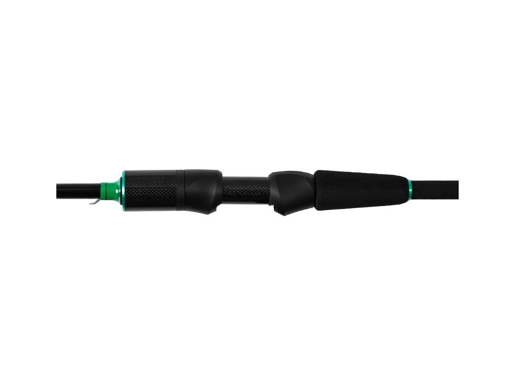 Na pohled netradiční rukojeť se v ruce drží zcela fantasticky a pomáhá vám dokonale procítit každý pohyb vaší nástrahy. Kombinace EVA pěny, gumového potahu a uhlíkových součástí je prostě nadčasová, ale zároveň velmi trvanlivá. Minimalistické sedlo zase drží patku navijáku bez přímého dotyku s blankem, což minimalizuje možné falešné záběry. Blank je osazen sérií oček z dílny firmy Seaguide, která je etalonem spolehlivosti. Černo zelené provedení výborně doplňuje tento skvostný prut a je už jen pomyslnou třešničkou na tomto výjimečném prutu.