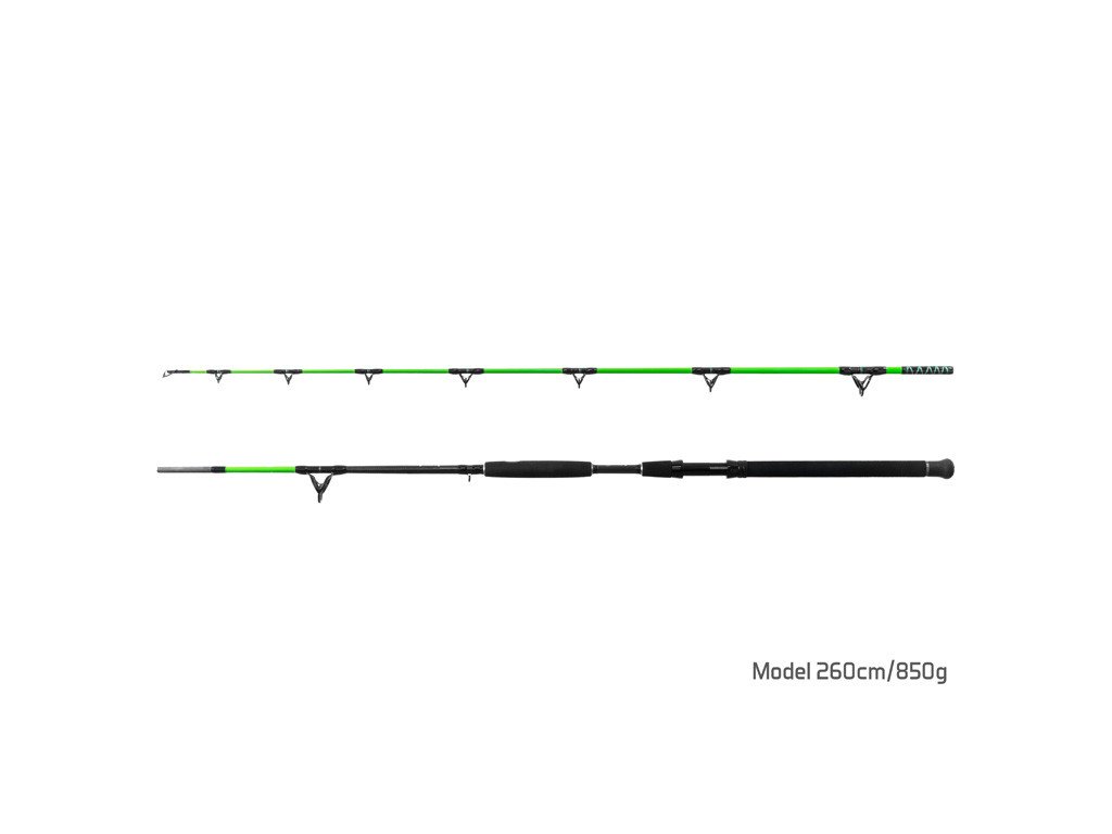 Osazený je očky, které jsou postaveny na extrémně silném kovovém rámu s vnitřní výplní SIC, která dovolují použití extrémních šňůr. Spoj prutu je dodatečně zesílen vrstvou karbonu navíc. Pro extrémní použití bylo použito masivní, celokovové sedlo navijáku s pojistnými maticemi. Celkový komfort dotváří ergonomický navržená rukojeť s maximálním důrazem na pohodlné uchopení a ideální páku.