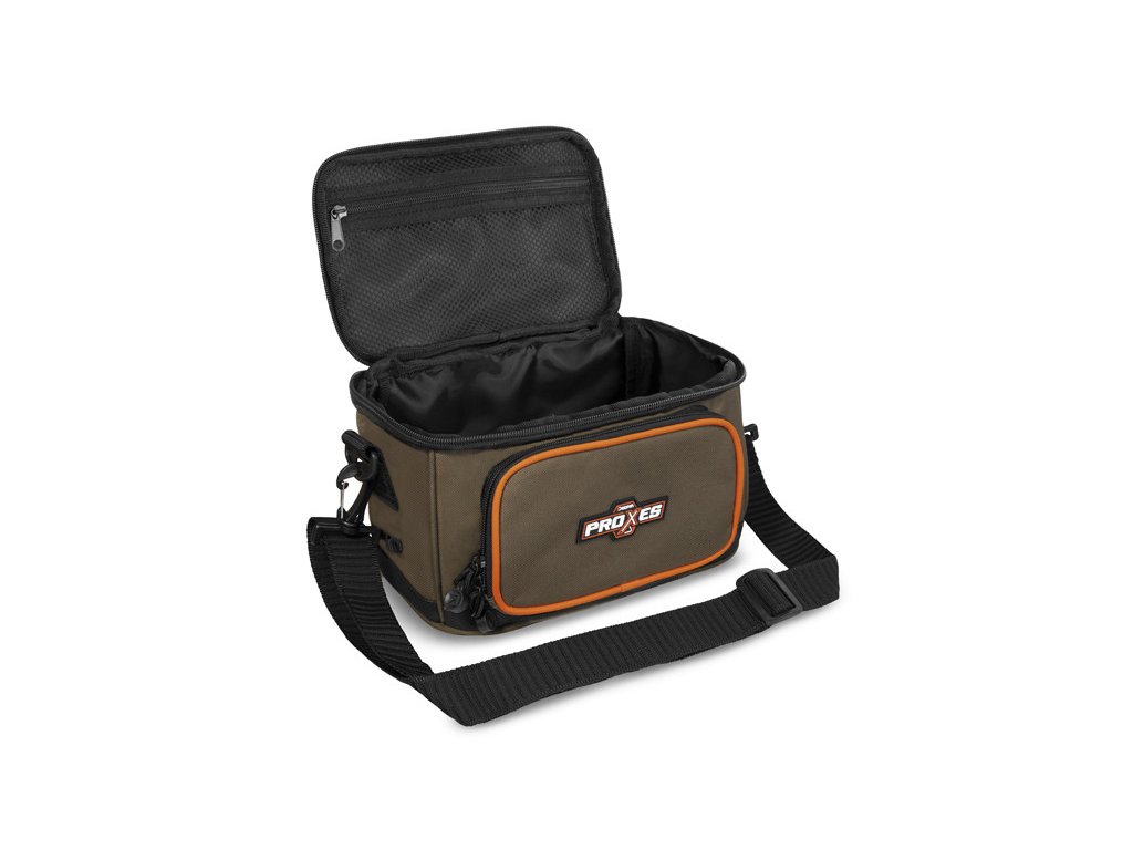 Taška je zhotovena z kvalitních a odolných materiálů. Navíc je její spodní část dodatečně chráněna gumovou vrstvou přesahující nad dno tašky pro zamezení prostupu vlhkosti z mokré země. Hlavní část tašky tvoří dostatečně velký úložný prostor, ve kterém je již v základu umístěn průhledný plastový box s pořadatelnými přihrádkami, díky čemuž budete mít dokonalý přehled nad jeho obsahem. Box je svými rozměry vhodný například na přívlačové nástrahy, feederová krmítka, či jiné menší příslušenství.