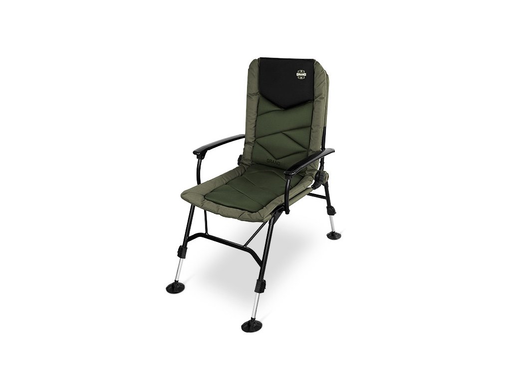 Komfortní a zároveň robustní křeslo je vylepšením osvědčeného a oblíbeného modelu Delphin Grand. Toto kvalitní křeslo je vybaveno pohodlnou, vzorově prošívanou matrací. Okrajové části matrace jsou potaženy textilií 600D, která zvyšuje odolnost vůči mechanickému opotřebení, a tím prodlužuje životnost matrace. Tento materiál se vyznačuje dobrou odpudivostí vody, čímž se snižuje nasákavost podkladového materiálu. V horní části opěradla se nachází designová hlavová opěrka, která je doplněna logem produktu. Hlavová opěrka je vyplněna paměťovou pěnou tzv. memory foam, která dodává nebývalý stupeň relaxu. Polohování opěradla lze provádět pomocí kloubového mechanismu nacházejícího se na stranách křesla.