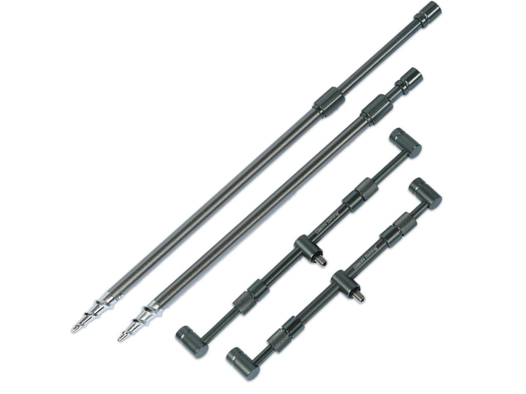 Kvalitní sada zavrtávacích tyčí a hrazd, které jsou šířkově nastavitelné a tím si zajistíte použití za různých rybolovných situací.