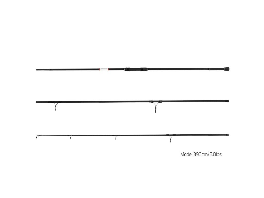Jeho enormní síla je ukryta v napohled štíhlém blanku. Nenechte se však zmást. Tento prut má síly na rozdávání. Díky použitému karbonu je blank poměrně lehký a dovoluje i velmi vysokou kadenci náhozů bez pocitu přetížení sestavy. Silnostěnný blank je stavěn na extrémní zátěže a dovoluje uživateli u vody často nevídané výkony, co do délky hodu, to do objemu přepravovaného krmiva lovného místa. Osazen je silnými dvoupatkovými očky s výplněmi SiC, koncovým "trychtýřovitým očkem" a # 50 náběhovým očkem. Prodloužené DPS sedlo dovoluje upevnění těch největších surfových navijáků. Decentní design prutu je kontrastem černé matné barvy a bíločervených detailů. S Bomberem si zakrmování zamilujete!