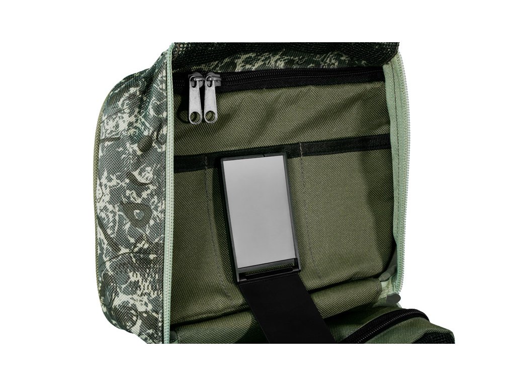 Taška je vybavena praktickým popruhem na suchý zip, který je doplněn o plastový háček. To umožňuje zavěšení v bivaku, nebo na kmen či větev stromu a podobně. Na opačném konci jsme umístili popruh na suchý zip, který provlečete středem role toaletního papíru a spojíte. Následně můžete tento toaletní papír bez problémů odvíjet. Uvnitř se nachází kapsa na toaletní papír a další praktické odkládací prostory, které jsou uzavíratelné zipem. Ve střední části jsou 3 přepážky, do kterých lze uložit například hřeben, zubní kartáček, nůžky a jiné. Najdeme zde i malé zrcadlo (5.5x8cm), které je opatřeno plastovou krytkou a připevněno je k taštičce prostřednictvím suchého zipu, díky čemuž jej lze v případě potřeby vyjmout. Na vnější straně je taška vybavena poutkem pro jednodušší nošení.