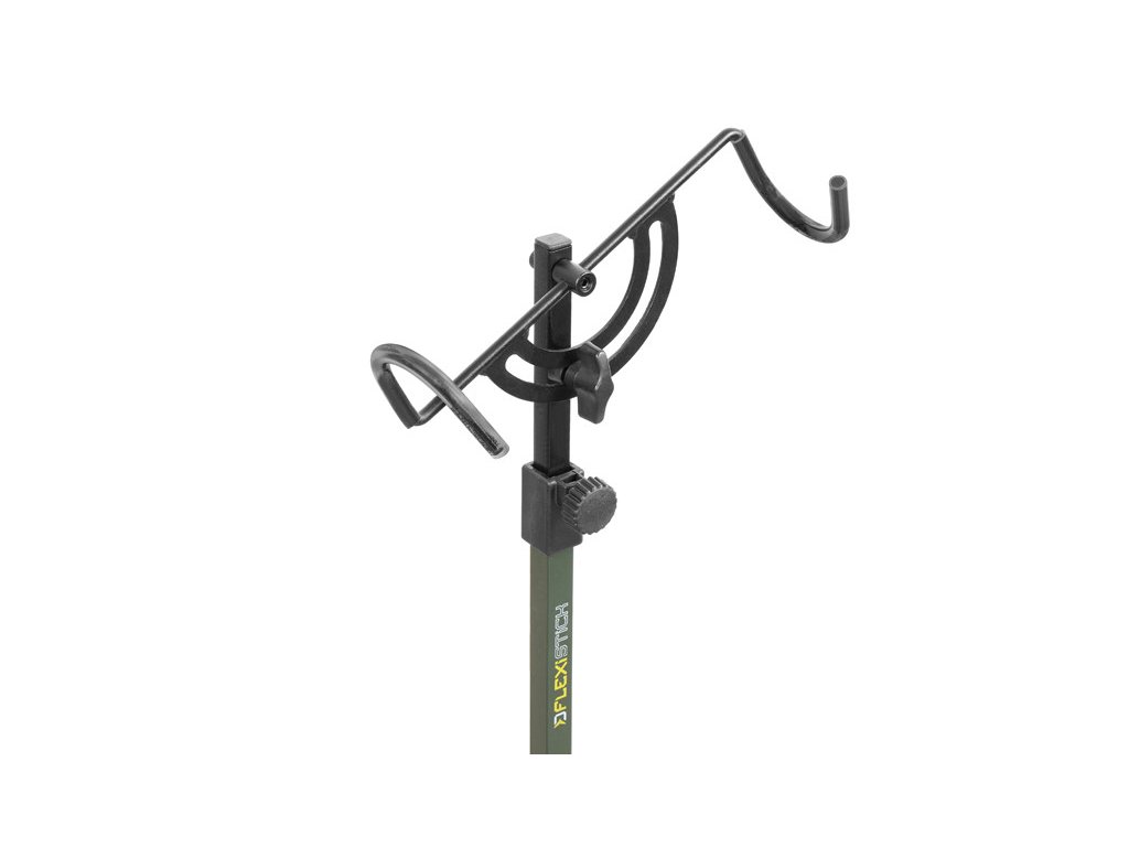 Vrchní část držící prut je vyformována z hrubého a pevného drátu černé barvy, který je specificky zahnutý tak, aby do něj bylo možné zasunout jakýkoli rybářský prut. Přední i zadní zahnutí je navíc potaženo gumou, což zamezí posouvání a zabrání poškození prutu. Držák je také polohovatelný pomocí kyvadlového mechanismu, takže si jej můžete nastavit do různých úhlů, ať už špičkou ke hladině, vodorovně nebo téměř kolmo vzhůru.