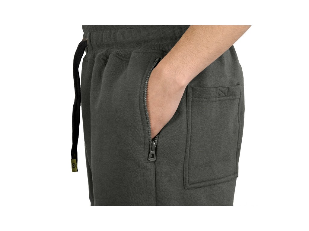 Po obou stranách, ale i vzadu, se nacházejí prostorné kapsy s uzavíráním na zip. Spodní část tepláků je zúžená a v oblasti kotníků opatřena gumičkami, které zamezují jejich sklouznutí a případnému znečištění.