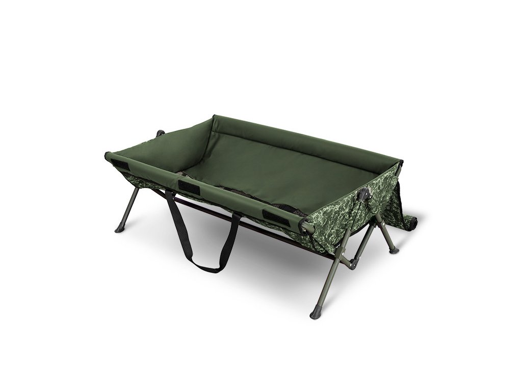 Ve vrchní části kolébky se nachází pogumované látkové překrytí se síťovinovým průzorem. Toto překrytí je fixovatelné pomocí suchého zipu. Díky tomu vám úlovek nemůže z kolébky vyskočit při přípravě například na vážení či focení. Překrytí je navíc navrženo v patentovaném C2G vzoru, čímž vám Cradle bude dokonale ladit s jinými produkty z této jedinečné série.