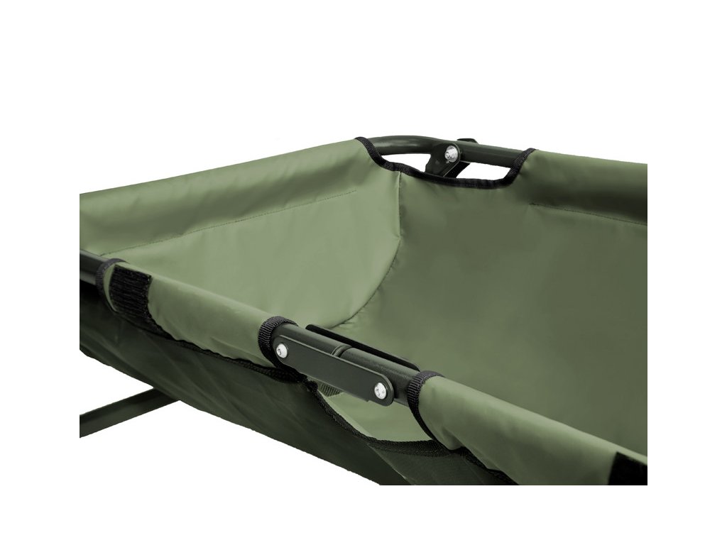Použitá látka s pogumovaným povrchem má několik výhod. Po ukončení lovu ji stačí do sucha vytřít a není tak nutné dlouho čekat dokud vyschne. Navíc je velmi snadno omyvatelná a neabsorbuje do sebe nepříjemně pachy, které se mohou následně šířit při transportu ve vašem autě. Celá vanička je velmi pevná a při extrémních testech bez problémů zvládla udržet statické závaží o váze až 75kg! Na obou krajích je všitá sítová látka, přes kterou zevnitř lehce odteče voda. EAZYSAFE také disponuje látkou na překrytí, která je opatřena suchými zipy. Můžete tak v ní rybu uzavřít, pokud si například potřebujete připravit fotoaparát, případně jít nabrat vodu na polití úlovku. Nohy jsou opatřeny kloubovými patkami, které se přizpůsobí terénu a zamezí zaboření do země v případě měkčího podkladu. Při navrhování jsme však mysleli i na transport, což je další silná stránka tohoto produktu. Ve středu je konstrukce důmyslně předělena a tak ji stačí jednoduše přeložit napůl a pomocí rukojetí pohodlně přenášet.
