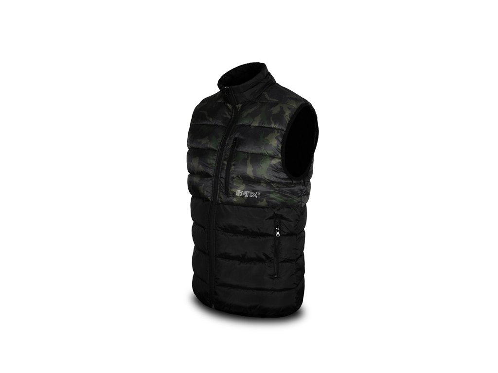 Zapínání je zajištěno pomocí kvalitního zipu, překrytého z vnější strany tkaninou, což zvyšuje jeho odolnost vůči vnějším podmínkám. Na obou stranách se nacházejí dostatečně velké kapsy na ruce nebo pro odložení potřebného příslušenství. Vesta Banx disponuje také vyvýšeným límcem pro lepší překrytí krku a šíje při nízkých teplotách vzduchu.