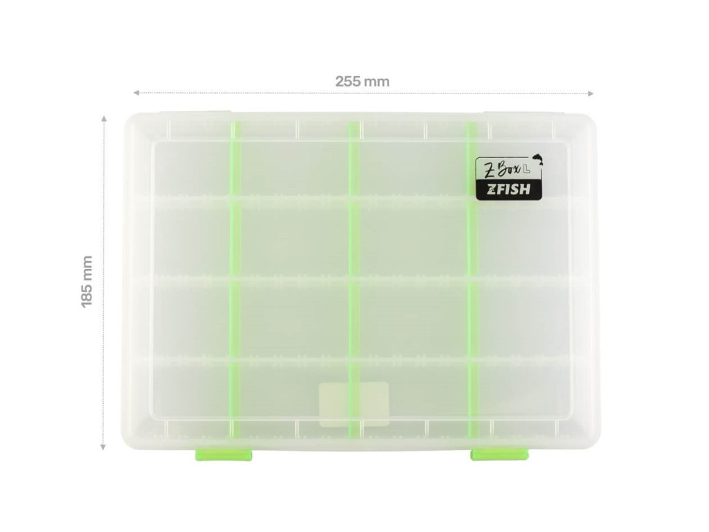 ZFISH Krabička Z-Box L je klasická, univerzální, průhledná krabička/tackle box od české značky ZFISH. Tento organizér disponuje dostatečným prostorem a přihrádky si přizpůsobíte dle potřeby pomocí vyjímatelných přepážek. Bezpečné uzavírání, nebo nechtěné otevření zajišťují dva zavírací klipy.