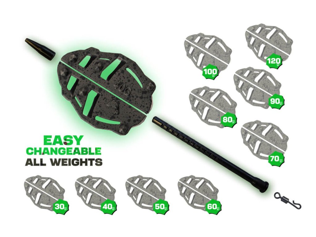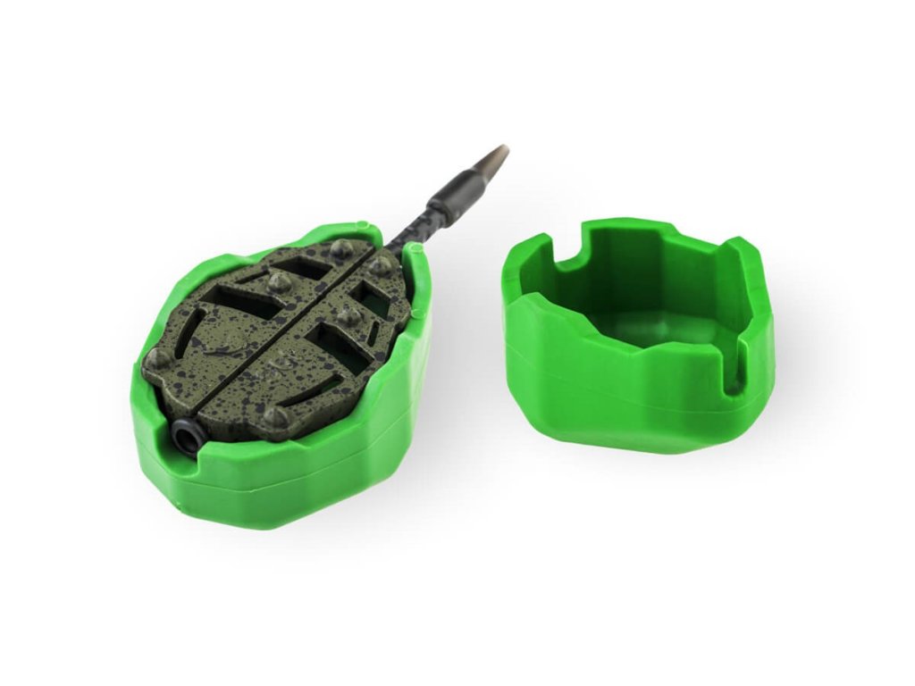 Tvar Spidera zaručuje dokonalé vyvážení při nahazování a jisté dosednutí ke dnu vždy tou správnou stranou. Nově navržený nosný rám zajišťuje optimální uvolňování krmné směsi a zároveň chrání nástrahu během náhozu. Součástí konstrukce je speciální ploška pro přesné umístění nástrahy s háčkem, která zajistí, že vaše nástraha bude vždy v ideální pozici. Krmítka Spider umožňují rychlou výměnu zátěže díky vyjímatelné trubičce a otvoru na zadní straně. Stačí vysunout trubičku, uvolnit vlasec a vyměnit zátěž za jinou – bez nutnosti převazování celé sestavy. Krmítka jsou vyrobena z bezolovnatého materiálu v matně zeleném provedení s černými tečkami, které dokonale splyne s dnem a minimalizuje plašení ryb.